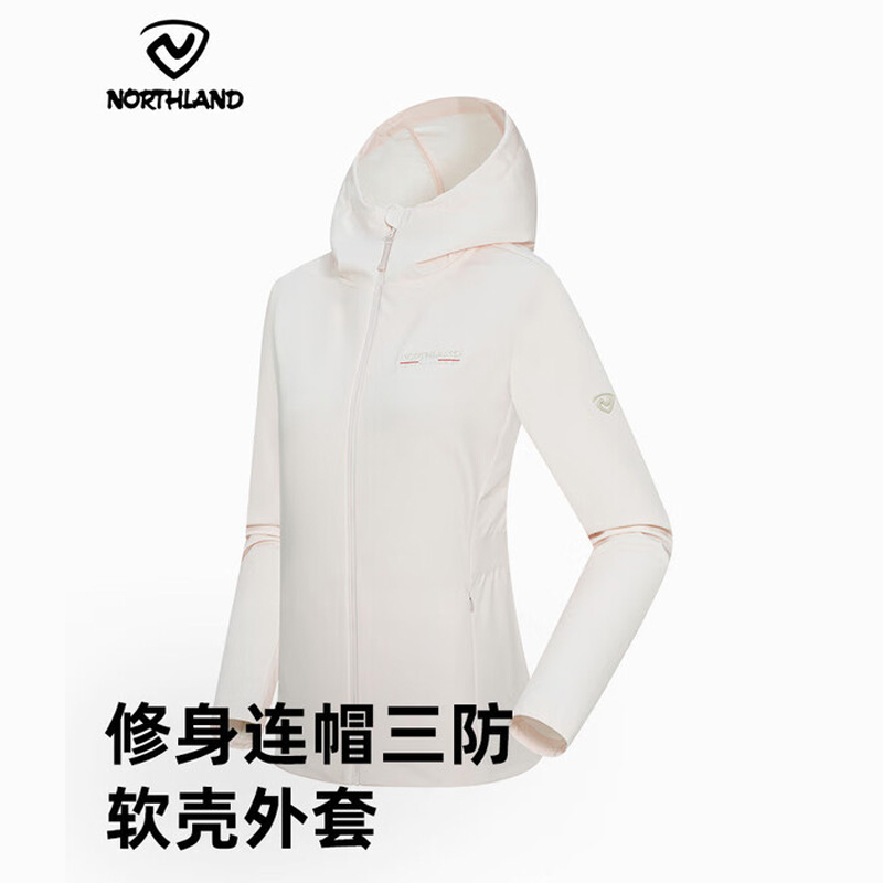 诺诗兰 连帽软壳外套 女士软壳外套纯色百搭修身连帽休闲外套防泼水保暖夹克 NKWET2614S 砂白色三防保暖 4级防泼 连帽软壳外套 NKWET2614S 砂白色