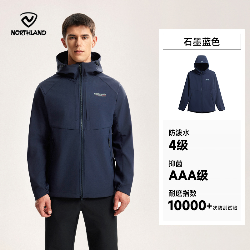NORTHLAND诺诗兰 男风雪外套 25秋冬软壳衣男新加绒保暖防风户外徒步登山外套 NXJFH0474E 石墨蓝色三防 耐磨 可升温 抑菌