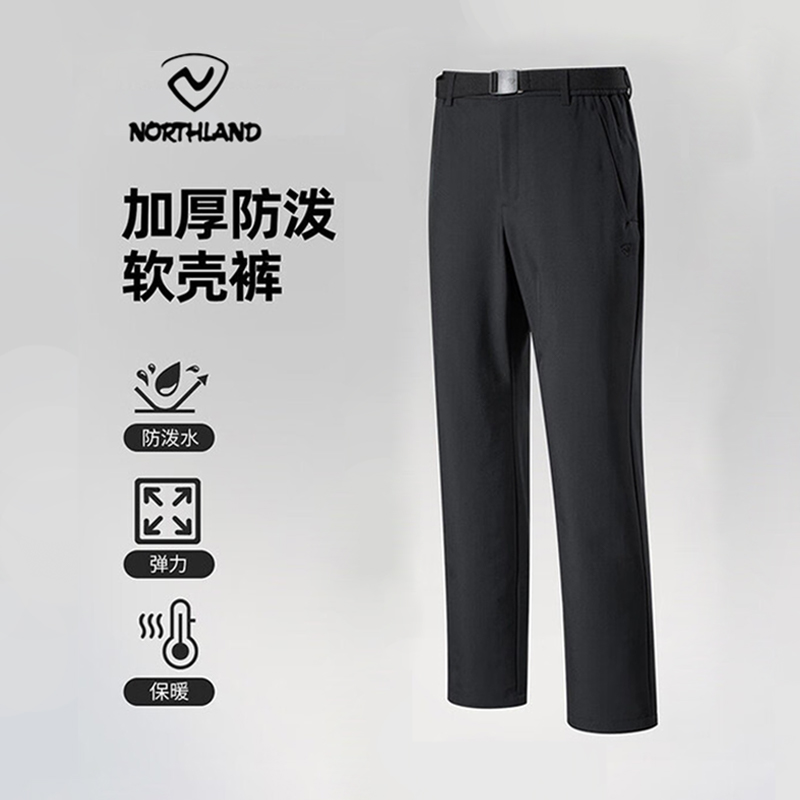 NORTHLAND诺诗兰 男款风雪长裤 白桦林男士加厚长绒软壳裤25秋冬新款户外防泼弹力长裤 NXPFT5756E 纯黑色保暖 防风 防泼水 防油污
