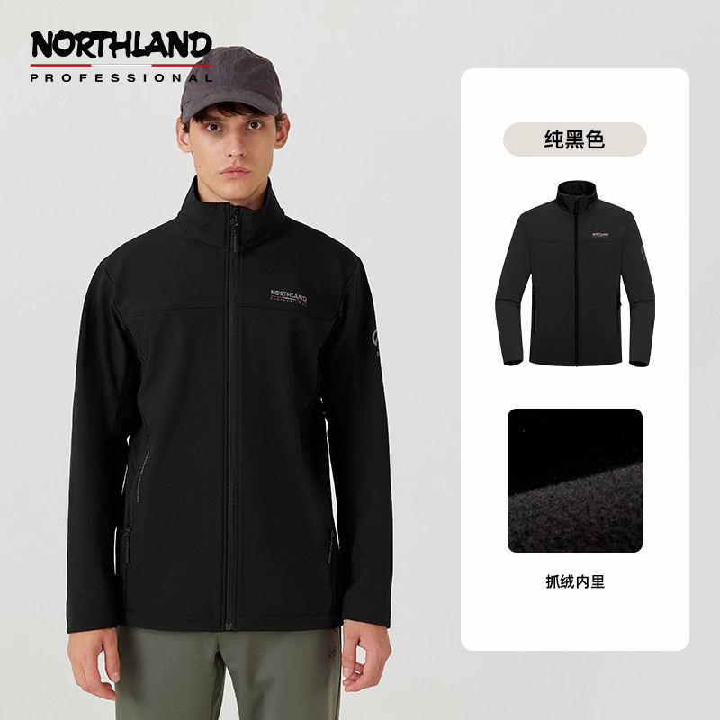 NORTHLAND诺诗兰 户外25新款男款弹力外套 防泼三防徒步登山软壳衣 纯黑色 NTJFH5153S本品参加新春开练满129减20 299减50 499减80 999减120元大促!