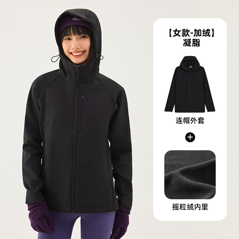 探拓 户外女士软壳衣 秋冬加绒防风防泼水徒步登山连帽外套 2537058WT 云墨黑轻防风雨 热能暖绒 户外女士软壳衣2537058WT 云墨黑
