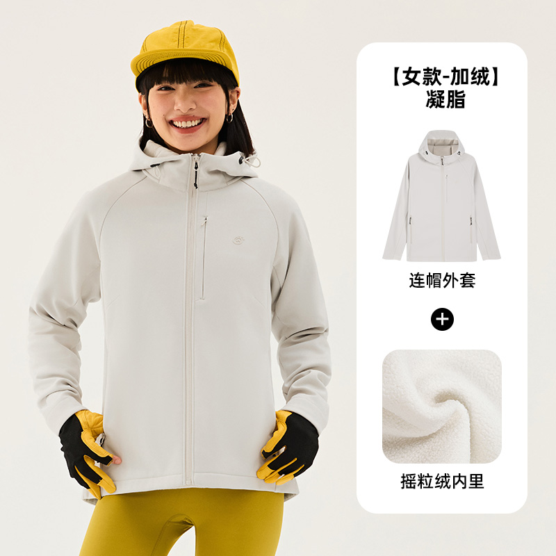 探拓 户外女士软壳衣 秋冬加绒防风防泼水徒步登山连帽外套 2537058WT 凝脂轻防风雨 热能暖绒 户外女士软壳衣2537058WT 凝脂