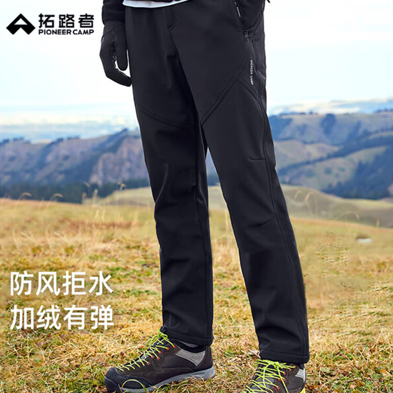 拓路者 男款藏狼软壳裤 男秋冬户外登山裤防风男士休闲长裤子冬季加绒保暖直筒 AHX305119L 黑色防泼防雨 弹力舒适 耐磨保暖内里