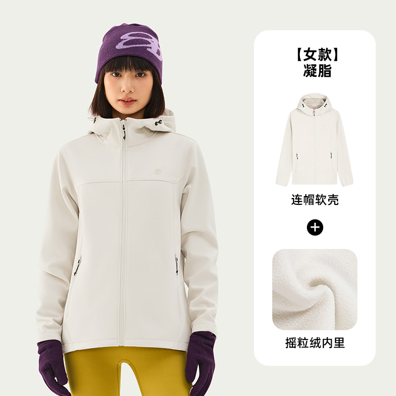 探拓 户外软壳衣女款 加绒防风防泼水透气徒步登山连帽外套 2537056WT 凝脂本品参加新春开练满129减20 299减50 499减80 999减120元大促!