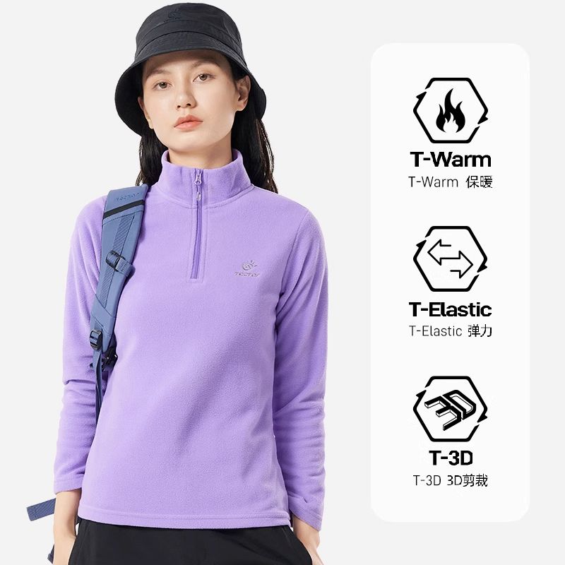 TECTOP探拓 秋冬户外女款抓绒衣 半开衫运动加绒休闲保暖情侣套头抓绒衣 MZRY033-6 丁香紫更保暖 轻量化 更亲肤 秋冬户外女款抓绒衣 丁香紫