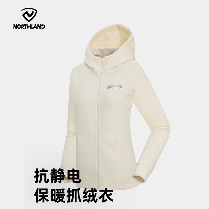 诺诗兰 抓绒外套 女秋冬抗静电保暖 户外通勤徒步打底开衫 NFTET2691S 砂白色保暖锁温 防静电 抓绒外套 NFTET2691S 砂白色