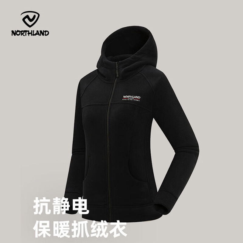 诺诗兰 抓绒外套 女秋冬抗静电保暖 户外通勤徒步打底开衫 NFTET2691S 纯黑色保暖锁温 防静电 抓绒外套 NFTET2691S 纯黑色