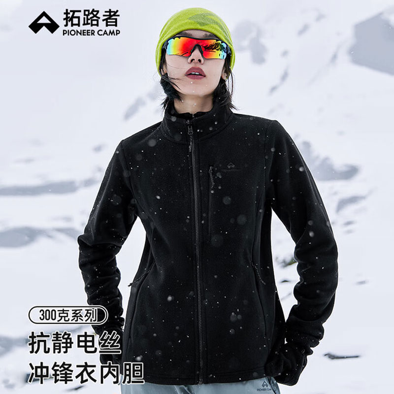 拓路者 摇粒绒抓绒衣 女秋冬户外运动徒步摇粒绒保暖防风立领开衫外套冲锋衣内胆 GKBLW30001 黑色导电丝抗静电 蓬松保暖 摇粒绒抓绒衣 GKBLW30001 黑色
