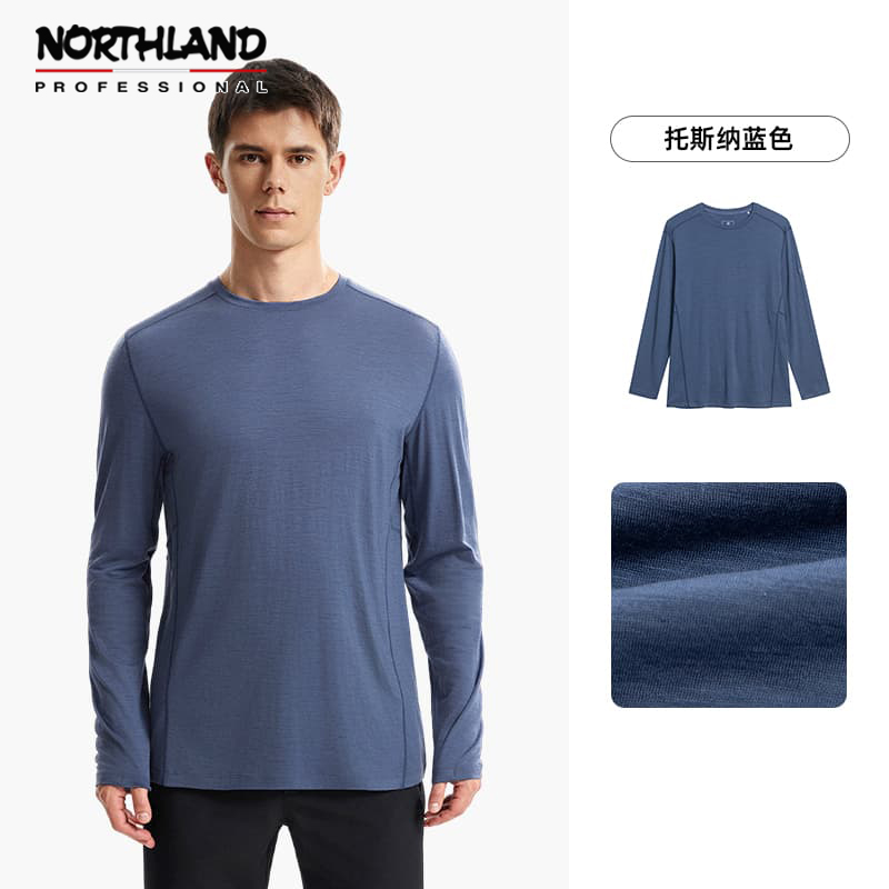 NORTHLAND诺诗兰 男 美利奴羊毛长袖T恤 25秋冬新男户外运动亲肤抑菌透气打底衫 NTSFH5583E 托斯纳蓝色吸湿排汗 清新抑菌
