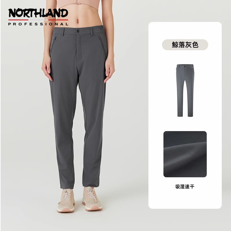 NORTHLAND诺诗兰 男女款 快干长裤 户外运动徒步 吸湿排汗 透气干爽休闲弹力裤 NQPET5355E 鲸落灰色吸湿速干 包容舒适