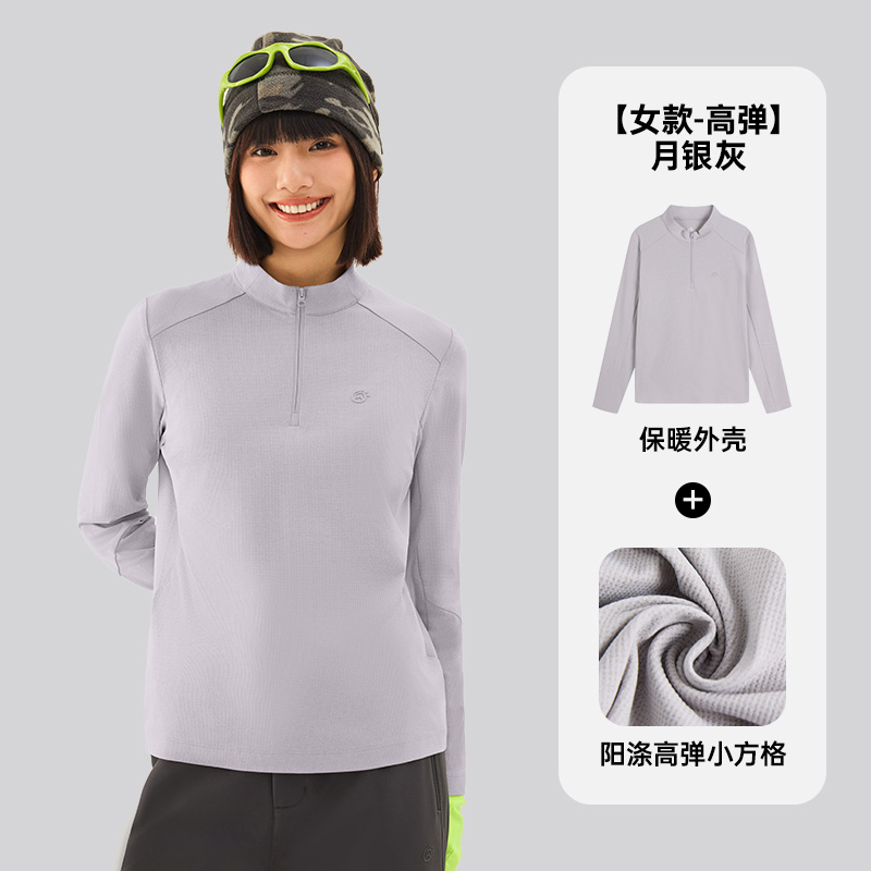 探拓 户外速干衣 女款长袖T恤透气徒步登山半开衫上衣打底衫 2537068TX 月银灰轻盈弹力 合身无拘 户外速干衣 2537068TX 月银灰
