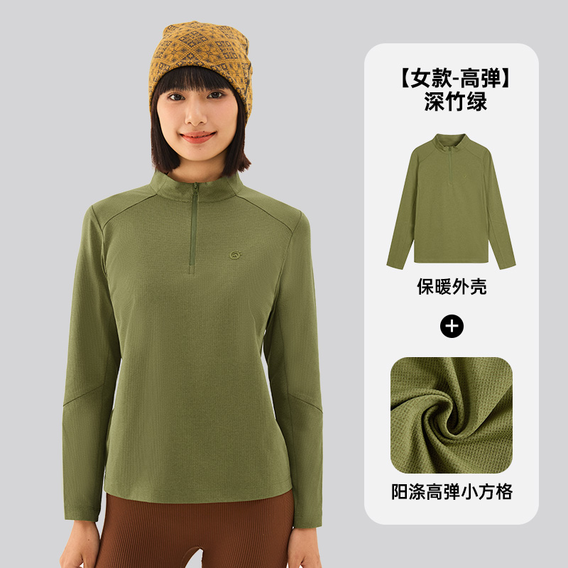 探拓 户外速干衣 女款长袖T恤透气徒步登山半开衫上衣打底衫 2537068TX 深竹绿轻盈弹力 合身无拘 户外速干衣 2537068TX 深竹绿