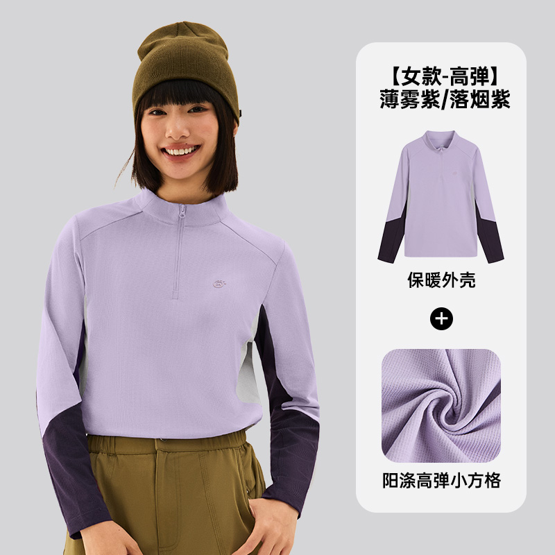 探拓 户外速干衣 女款长袖T恤透气徒步登山半开衫上衣打底衫 2537068TX 薄雾紫/落烟紫轻盈弹力 合身无拘 户外速干衣 2537068TX 薄雾紫/落烟紫
