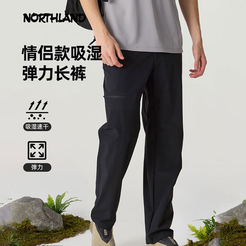 NORTHLAND诺诗兰 男女款长裤 吸湿速干裤户外防风透气弹力男女长裤 NQPFH5253E 纯黑色排汗吸湿 自在干爽