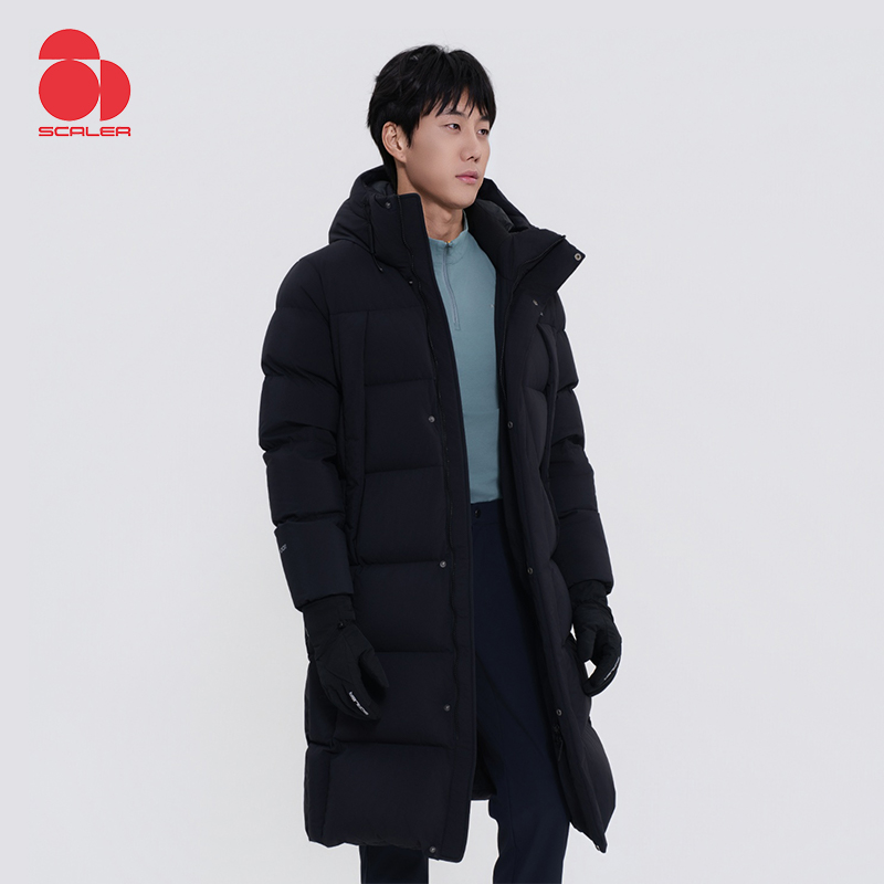 SCALER思凯乐 长款鹅绒服 户外25秋冬男女长款鹅绒服 防风防水保暖过膝羽绒服 F6126665 黑色本品参加新春开练满129减20 299减50 499减80 999减120元大促!