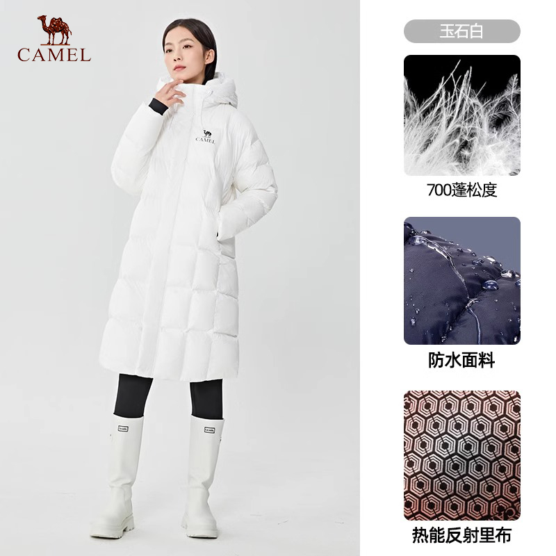CAMEL骆驼 男女款羽绒服 户外羽绒服冬季新款女款男款3A抗菌防泼水防风石墨烯羽绒服 W34CR07614 玉石白防水保暖 蓬松羽绒 持久锁温
