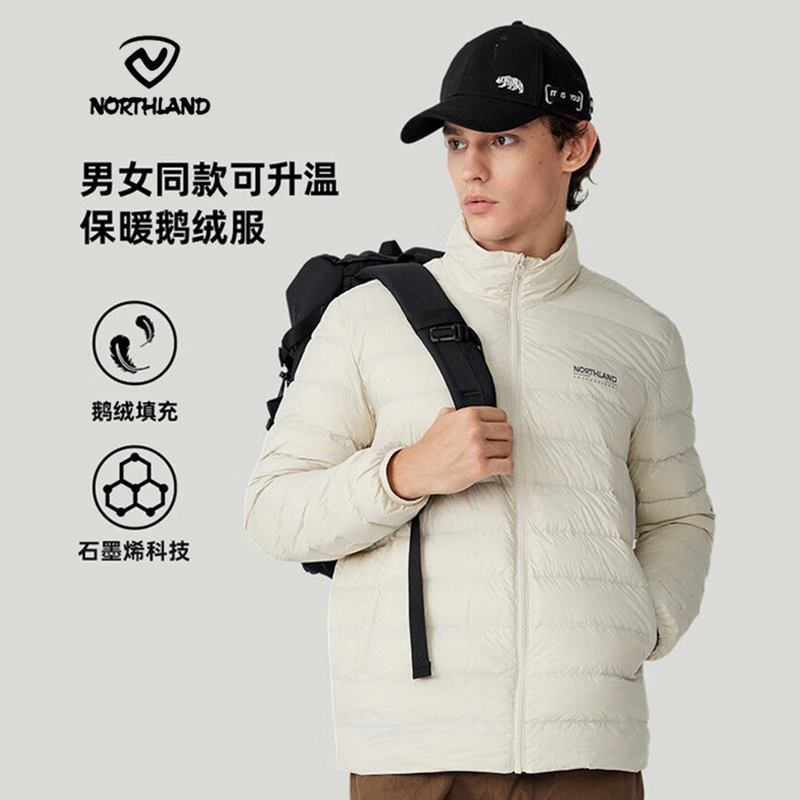 NORTHLAND诺诗兰 男女同款羽绒服 轻薄鹅绒羽绒服石墨烯保暖冲锋衣内胆 NDJEH0533E 暖沙白色保暖轻便 670蓬松