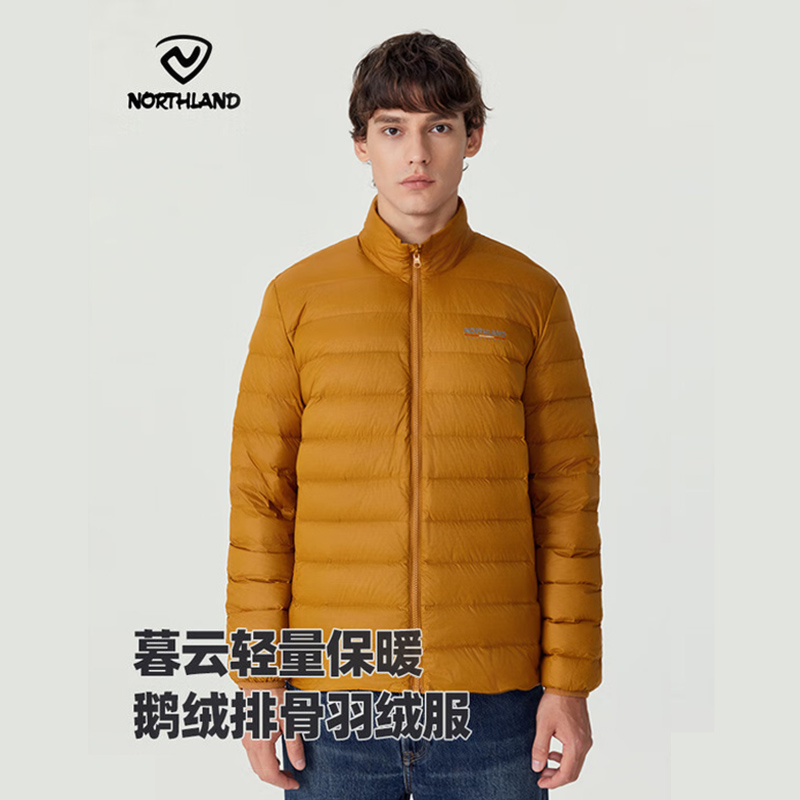NORTHLAND诺诗兰 男女款羽绒服 秋冬户外男女轻薄鹅绒羽绒服 可升温保暖外套冲锋衣内胆 NDJEH0533E 棕黄色升温保暖 650蓬松
