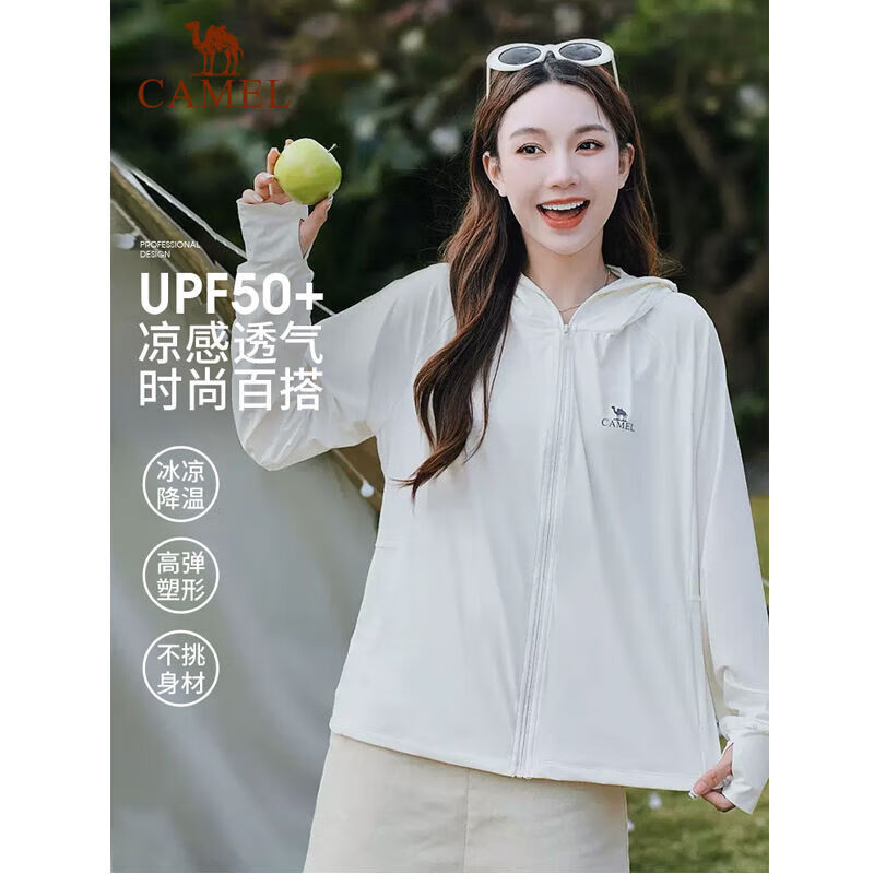 骆驼 防晒衣 A23BA6B067 无际白/冰河银 女 男女款upf50+透气防紫外线外套防晒服隐藏式发洞 冰感面料 防晒衣 A23BA6B067