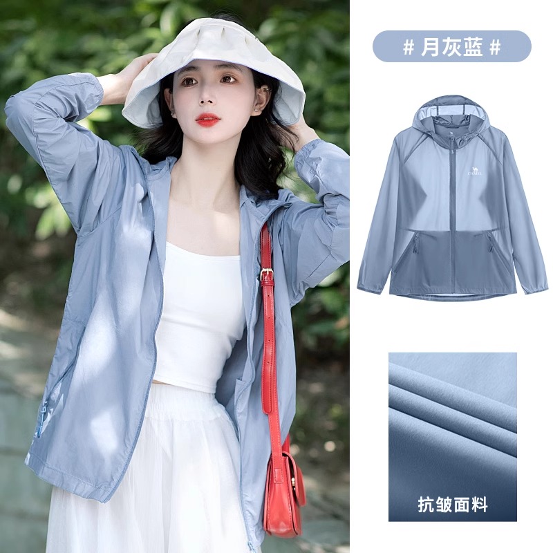 CAMEL骆驼 户外防晒衣 男女同款夏季新款遮阳透气轻薄凉感冰丝防晒服 月灰蓝 A012251005A遮阳防晒 畅享户外