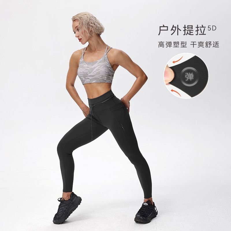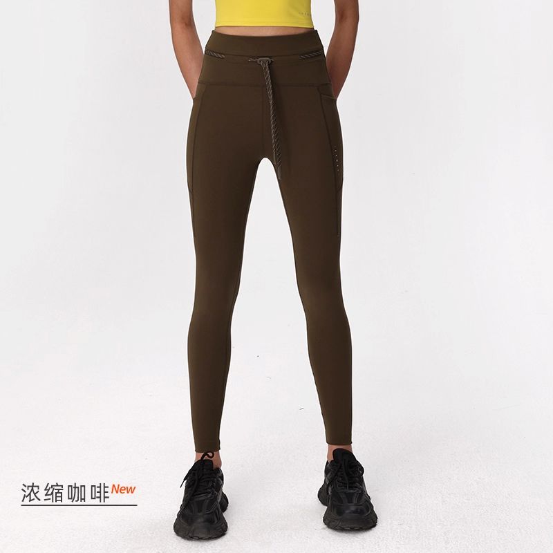 粒子狂热 紧身裤女高弹力瑜伽健身裤口袋款 PSF311823-818 桐棕色 女士高腰空气裤两侧口袋随意裁紧身裤 高腰收腹 裸感无痕 翘臀显美腿 紧身裤女高弹力瑜伽健身裤口袋款 桐棕色