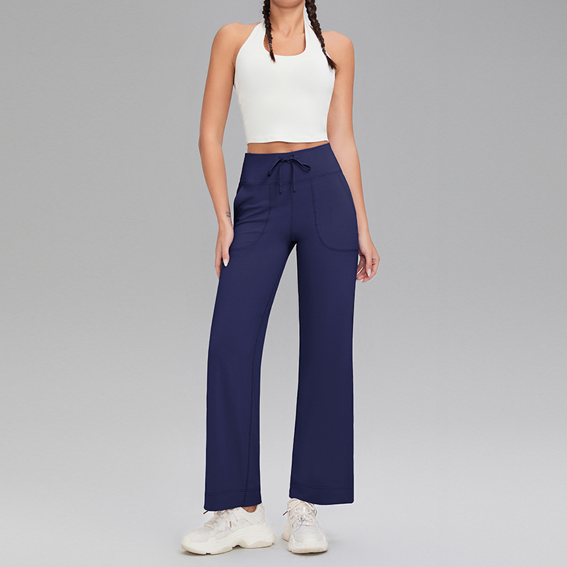 范斯蒂克 徕卡双面磨毛健身裤女 YCF2353301 海军蓝 带口袋高腰直筒垂感裤 健身裤宽松阔腿瑜伽裤裸感亲肤 提臀收腹 徕卡双面磨毛健身裤女YCF2353301 海军蓝